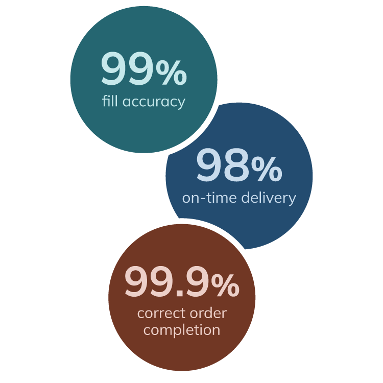 We are dedicated to getting your orders picked, packed and shipped on-time, and accurately. In fact, our: